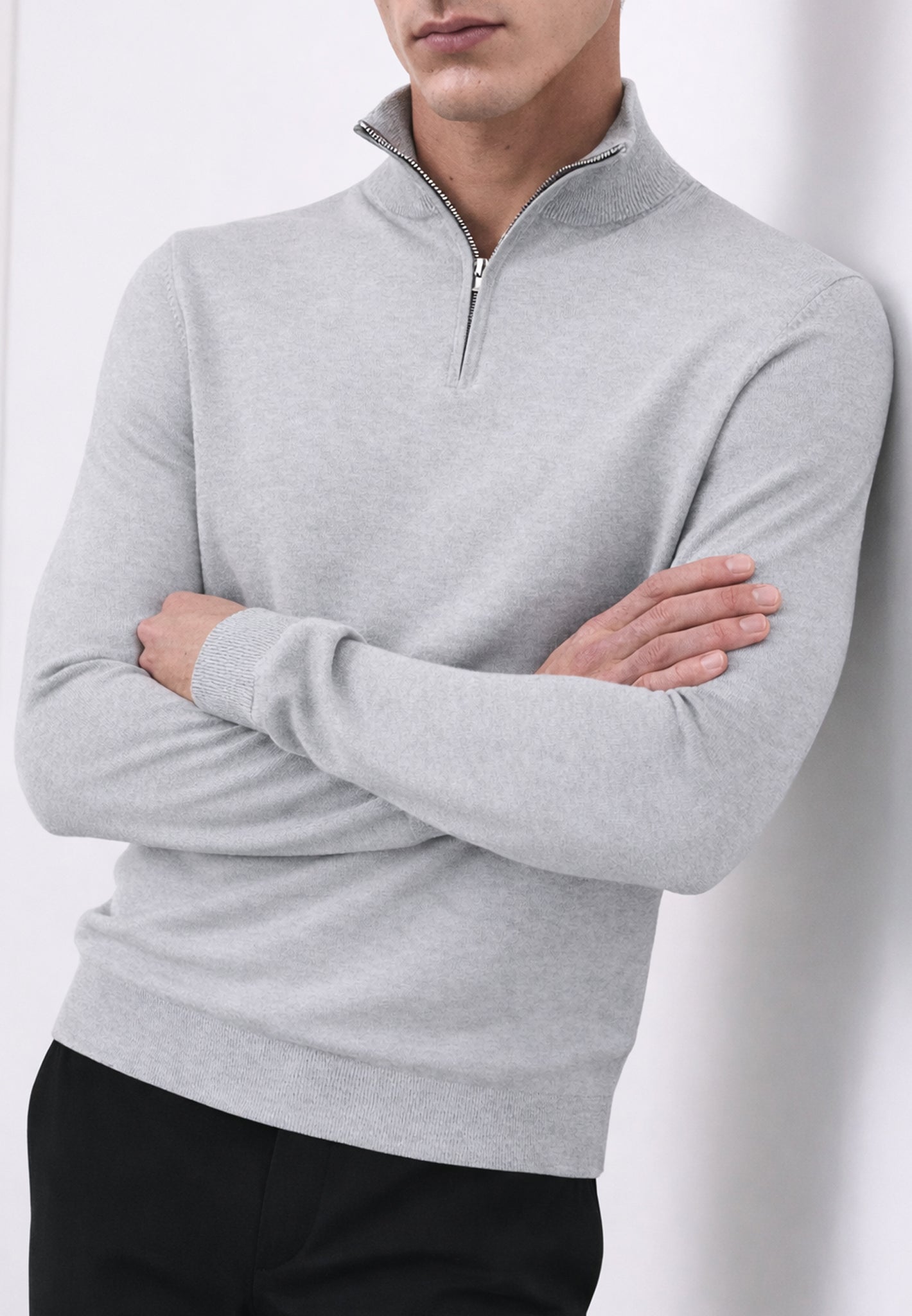 Crafted from a luxury cotton-silk knitted fabric with a soft touch along with a perfect fit that lasts. Featuring a zip neck fastening, premium rib neck, hem & cuffs and finished with an engraved Luciano zip puller for those who appreciate high quality and attention to detail.
